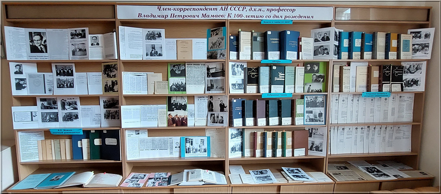 В библиотеке организована выставка "Член-корреспондент АН СССР, д.х.н., профессор Владимир Петрович Мамаев: К 100-летию со дня рождения".