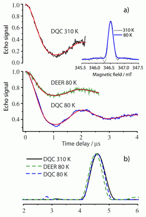 Были разработаны оптимальные по релаксаци- онным свойствам спиновые метки на основе триарилметильных (ТАМ) радикалов, подходы к их сайт-направленному введению в ДНК и эффективной иммобилизации. В результате, впервые методом двухквантовой когерентнос- ти (DQC) продемонстрировано измерение больших расстояний ∼ 4.6 нм с высокой точ- ностью при 310 K (37 °C), открывающее новые перспективы структурных исследований биомолекул в нативных условиях. |